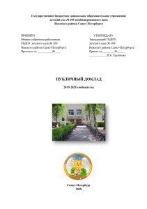 Государственное бюджетное дошкольное образовательное учреждение детский сад № 109 комбинированного вида Невского района Санкт-Петербурга ПРИНЯТО УТВЕРЖДАЮ Общим собранием работников Заведующий ГБДОУ ГБДОУ детского сада № 109 детского сада № 109 Невского района Санкт-Петербурга Невского района Санкт-Петербурга Протокол от __________№ ___ Приказ от ________№_____ ____________И.Б. Трушкова ПУБЛИЧНЫЙ ДОКЛАД 2019-2020 учебный год Санкт-Петербург 2020