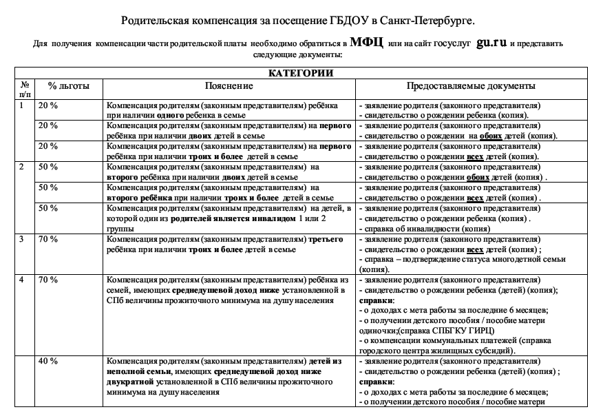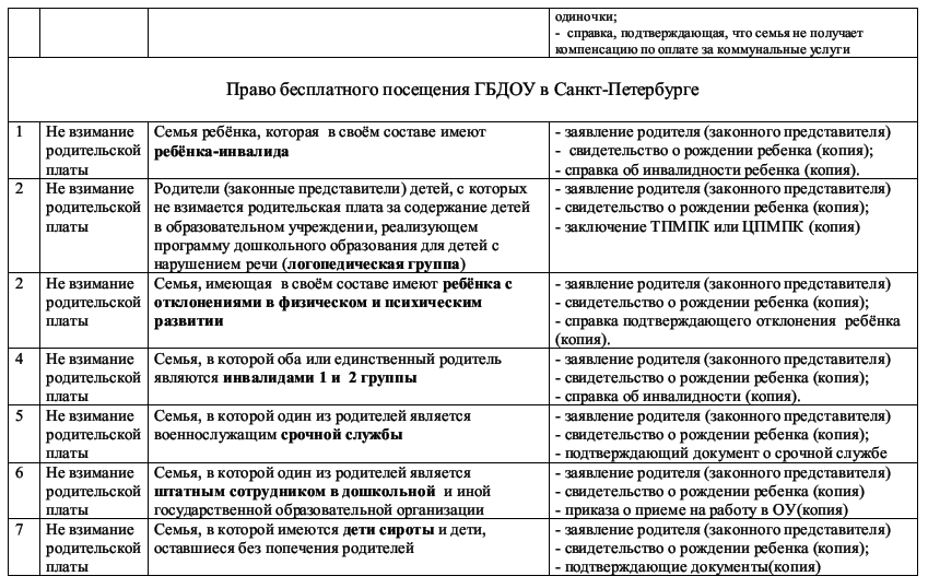 На основании ЗАКОНА САНКТ-ПЕТЕРБУРГА ОТ 22.10.2011 г. №728-132 «СОЦИАЛЬНЫЙ КОДЕКС САНКТ-ПЕТЕРБУРГА», ЗАКОНА САНКТ-ПЕТЕРБУРГА "О ДОПОЛНИТЕЛЬНЫХ МЕРАХ СОЦИАЛЬНОЙ ЗАЩИТЫ ОТДЕЛЬНЫХ КАТЕГОРИЙ ИНВАЛИДОВ" И ПОСТАНОВЛЕНИЯ ПРАВИТЕЛЬСТВА САНКТ-ПЕТЕРБУРГА ОТ 31 ДЕКАБРЯ 2016 г. N 1313 "О РОДИТЕЛЬСКОЙ ПЛАТЕ ЗА ПРИСМОТР И УХОД ЗА ДЕТЬМИ В ГОСУДАРСТВЕННЫХ ОБРАЗОВАТЕЛЬНЫХ УЧРЕЖДЕНИЯХ, РЕАЛИЗУЮЩИХ ОБРАЗОВАТЕЛЬНЫЕ ПРОГРАММЫ ДОШКОЛЬНОГО ОБРАЗОВАНИЯ" и в соответствии с распоряжением Комитета по образованию Правительства Санкт-Петербурга от 03.08.2015 №3747-р